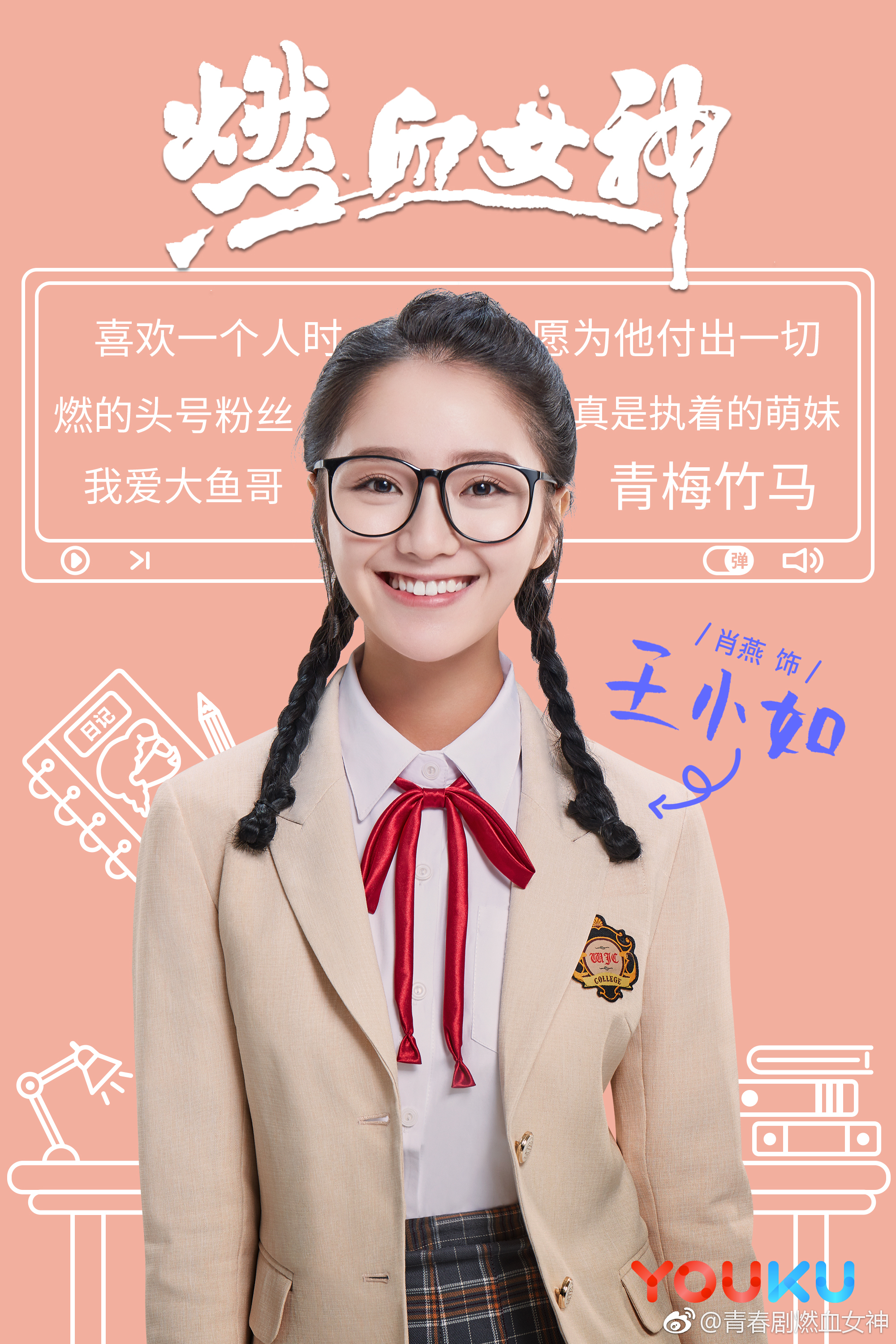 王小如介绍:王小如外号土豆妹,是个外表呆萌可爱,内心坚强倔强的女孩儿,她从小就很独立,只要认定的事情就会坚持到底。她一直暗恋青梅竹马“林大鱼”,但不敢告白。王小如和从2066年穿越回来的燃成为同学,得燃的鼓励,向林大鱼追爱。